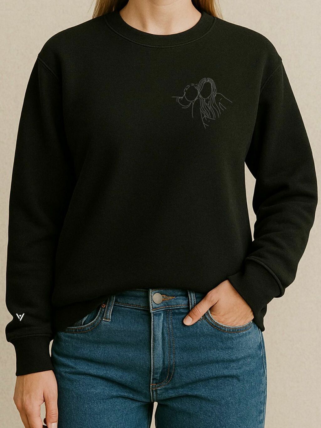 Descubra a exclusividade de ter um moletom feito à mão, especialmente para você, com a sua foto favorita. Transforme momentos especiais em uma peça única, capturando a essência daquele momento. Bordar fotos é ter uma experiência única de usar um moletom que conta a sua história.